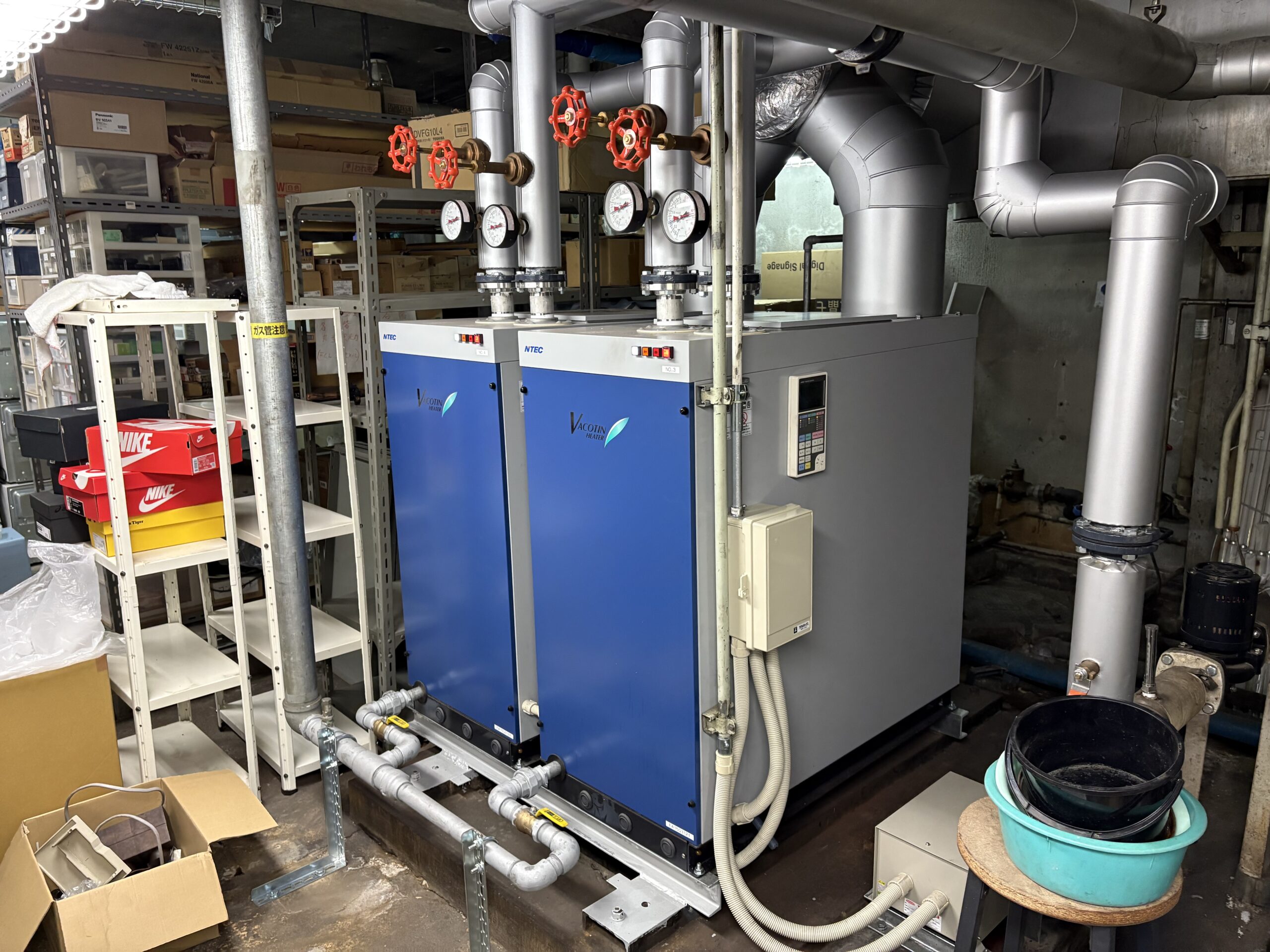 大阪市内のビジネスホテル様にて、長年使用されていた業務用ボイラー(温水器)2機の更新工事を実施しました。